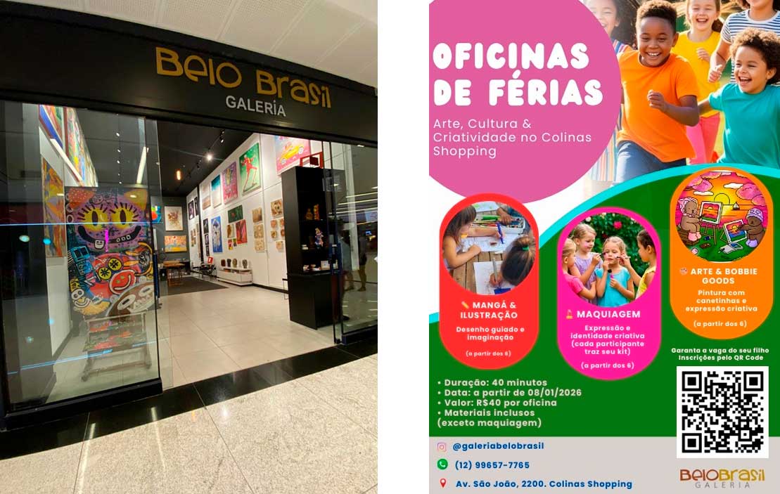LEIA MAISGaleria Belo Brasil promove programação de férias com oficinas criativas para crianças e jovens em São José dos Campos.
